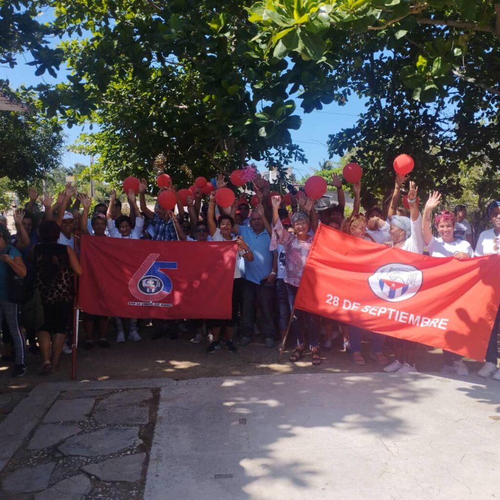 Con entusiasmo y colorido los cederistas de la zona 62 del poblado de La Aurora, vanguardia nacional en las tareas de la organización de masas, recibieron el estandarte proveniente de la ciudad cabecera provincial, y los asistentes a la cita pudieron degustar la rica caldosa característica de las celebraciones de los CDR, y a seguidas se realizó un recorrido por las zonas 17 y 19 de Guayos con destacado trabajo en las tareas de la organización.