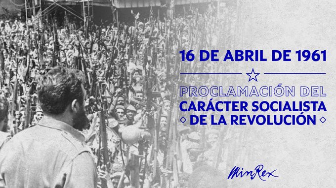 El 16 de abril de 1961, resume tres efemérides gloriosas para el pueblo cubano. Una, la Declaración del Carácter Socialista de la Revolución Cubana. Otra, el Día del Miliciano y la tercera, la fundación del Partido Comunista de Cuba