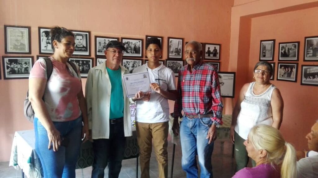 El té cultural fue marco propicio para entregar los reconocimientos a los ganadores del concurso por el centenario de Cabaiguán patrocinado por la Unión de Historiadores, resultando 4 premiados de 25 trabajos recibidos, resultando ganadores en la categoría de menores Deiny Lázaro Companioni Balmaseda y en adultos Felicia Estepa Valdivia. A los demás ganadores se les entregará el premio en encuentro similar a efectuarse  en próximos días.