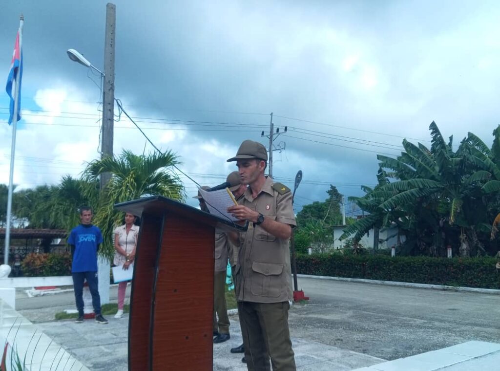 En la ceremonia, Daimelis Hernández Vega, política del Sector Militar del municipio dio lectura a la carta de felicitación del Jefe del Ejército Central en ocasión de la efeméride, mientras la Mayor Yurisdania Londres Dallet dio a conocer la orden de ascenso y felicitación al personal.