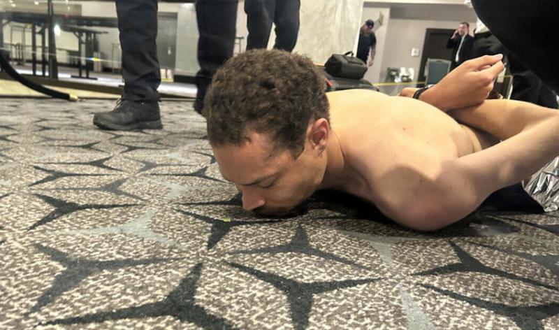 La Policía indicó que el presunto agresor fue interceptado en un control del Servicio Secreto en el vestíbulo del hotel y que llevaba varias armas, una escopeta, una pistola y múltiples cuchillos. Según las autoridades, el hombre intercambió disparos con agentes del orden y luego fue reducido. El organismo afirmó que se cree que actuó solo. Medios informaron que tras su arresto el hombre confesó que su objetivo era atacar a funcionarios de la Administración Trump.