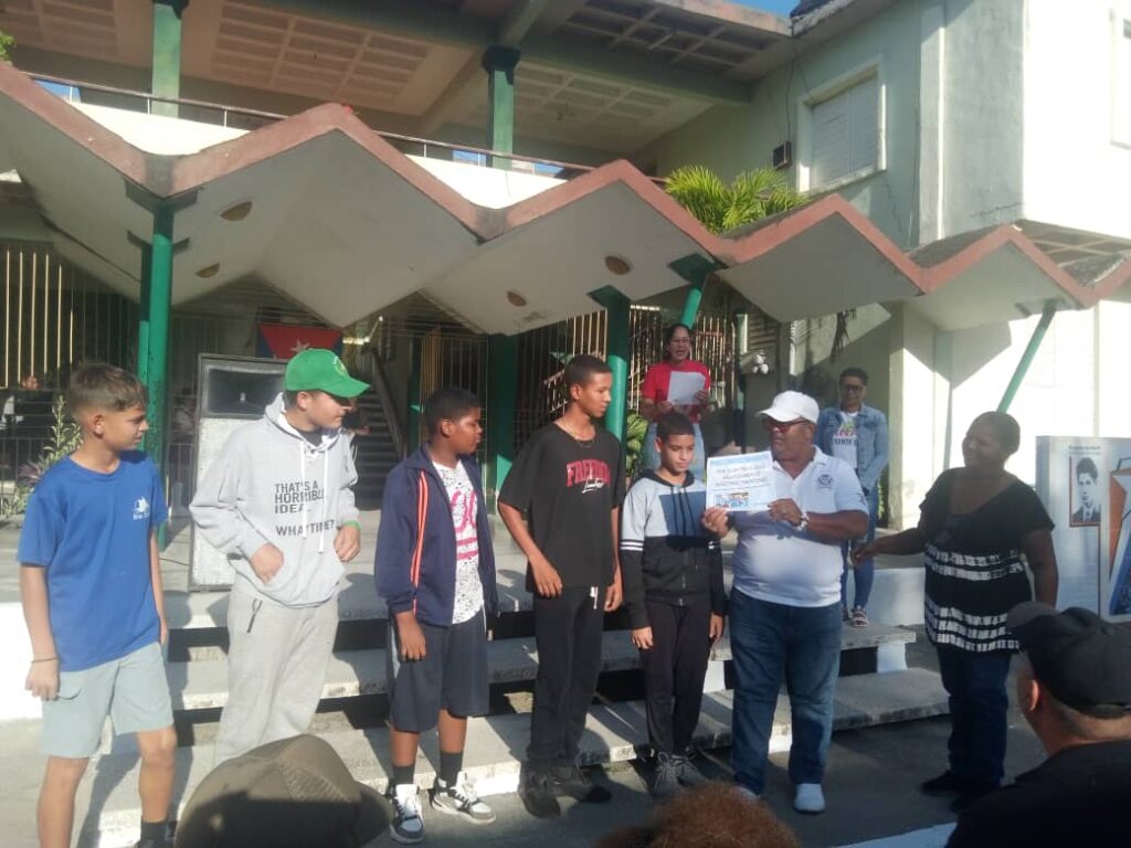 En correspondencia con el principio martiano: “honor a quien honor merece”, el proyecto infantil “Parranderitos de Guayos” recibió el reconocimiento de la comunidad a través de la Presidenta del Consejo Popular, Marianela Valdés, por su trabajo en aras de mantener viva la esencia de las Parrandas y por ofrecer garantía de continuidad de las raíces culturales más autóctonas de Guayos.