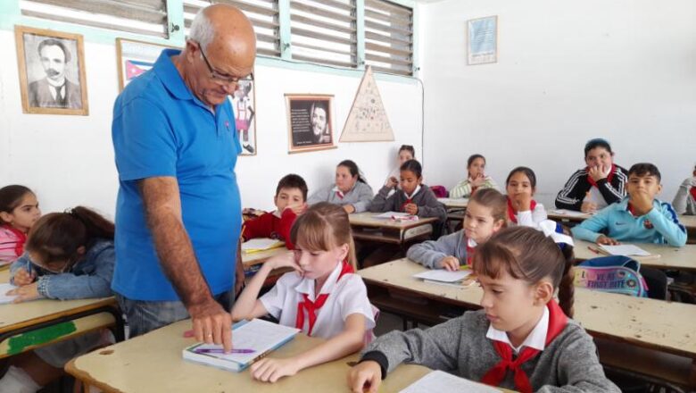 La mañana bosteza en Cabaiguán y en el recinto el silencio ordena. A la carga vuelven lápices, libros y libretas. El maestro, que desde 1962 adorna el pizarrón con su caligrafía perfecta, registra la fecha e indica el tema de la clase.